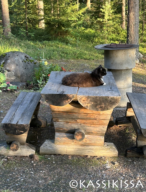 Toinen syy mökkiviikkoon oli se, ettemme tällä kertaa saaneet kissoille hoitajia kotiin, joten ne oli otettava mukaan. Ja koska niiden kanssa ei kuitenkaan sen laajemmin voi matkustaa, oli mökkiviikko meille nyt tämän kesäloman ainoa lomareissu. Vaan mikäpäs oli mökillä ollessa, kun säätkin olivat oikein suotuisat.