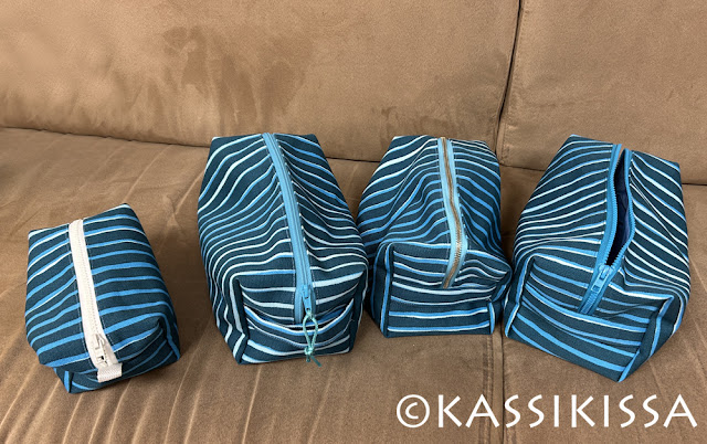 Mitat isompaan kokoon (eli miespuolisille henkilöille menevään) otin miehen vastaavasta (tehdasvalmisteisesta) pussukasta. Aika reilunkokoisia näistä tuli, mutta ainakin niihin mahtuu hyvin jatkossa tarpeellinen partavaahto ja sen sellaista.